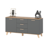 INGRID - Scandinavian Chest of drawers - 3 Drawers, 2 Doors White Matt / Wotan Oak H29 1/2" W59" D17 3/4"